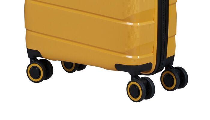 Doble hjul med matchende farger og integrerte, ergonomiske håndtak øverst og på siden